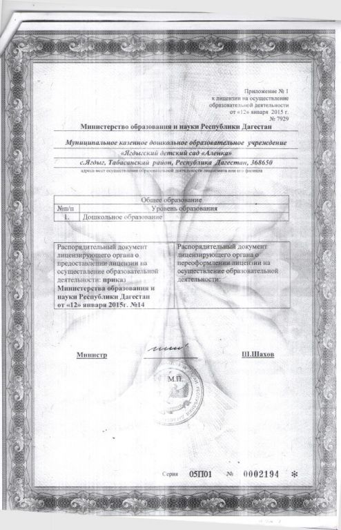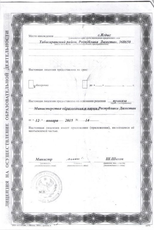 | Адрес местонахождения образовательной организации* | 368650 Республика Дагестан ,Табасаранский район,с.Ягдыг |