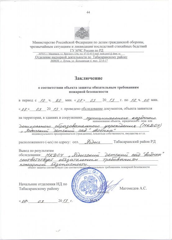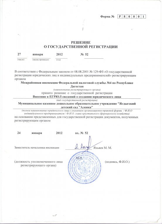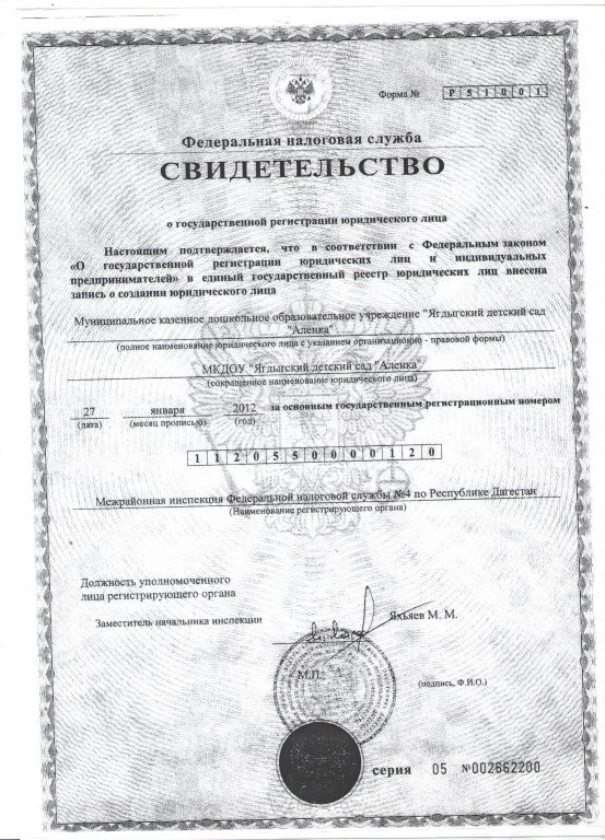 | Полное наименование образовательной организации* | Муниципальное казенное дошкольное образовательное учреждение "Ягдыгский детский сад"Аленка" |